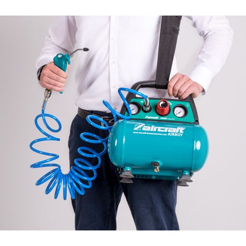 Universally applicable Oil-free piston compressor, therefore no oil change necessary and no oil in the condensate Fully automatic on-off operation Electric motor equipped with motor protection switch One pressure gauge each for display of container and working pressure Powder coated air receiver